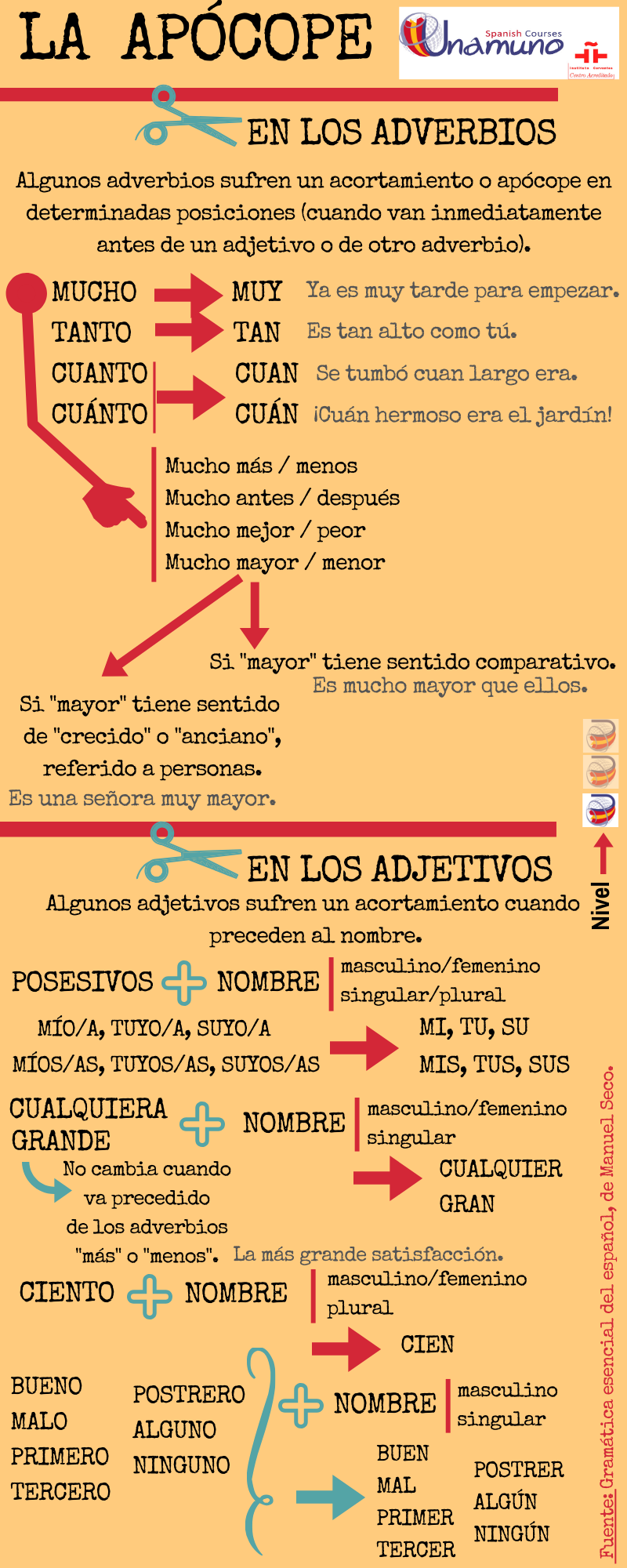 Reunimos en una infografía las principales características de la apócope en adverbios y adjetivos.